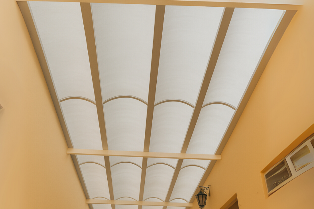 Sistema de cubierta corrediza automatizada diseñada para controlar la ventilación y el ingreso de luz natural en patios, terrazas o áreas interiores. Fabricado en policarbonato traslúcido con filtro UV, instalado sobre estructura de acero estructural con acabado anticorrosivo. El sistema motorizado permite abrir y cerrar la cubierta mediante control eléctrico, brindando funcionalidad, confort y un diseño moderno.