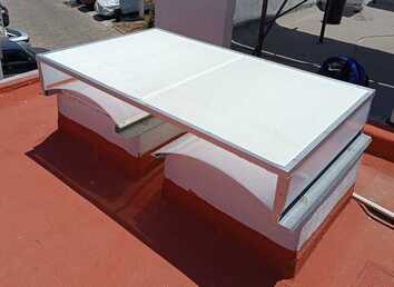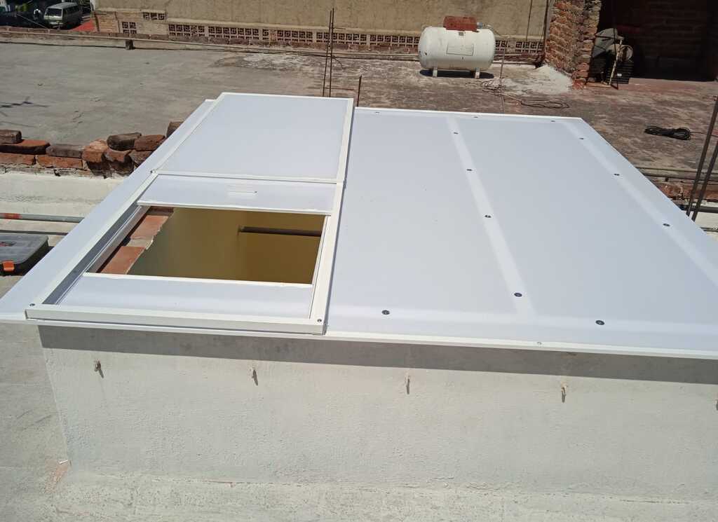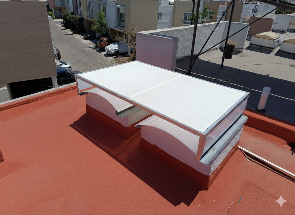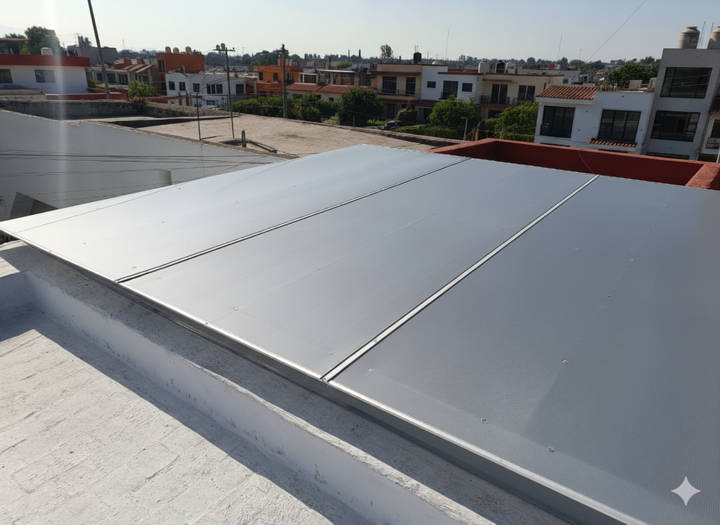 Sistema de domo corredizo diseñado para cubiertas de acceso y ventilación en azoteas, fabricado en policarbonato traslúcido con filtro UV, instalado sobre estructura de acero estructural con acabado anticorrosivo. Los perfiles de aluminio permiten un anclaje seguro, estético y de bajo mantenimiento. El sistema corredizo facilita la apertura parcial o total, garantizando funcionalidad y confort.